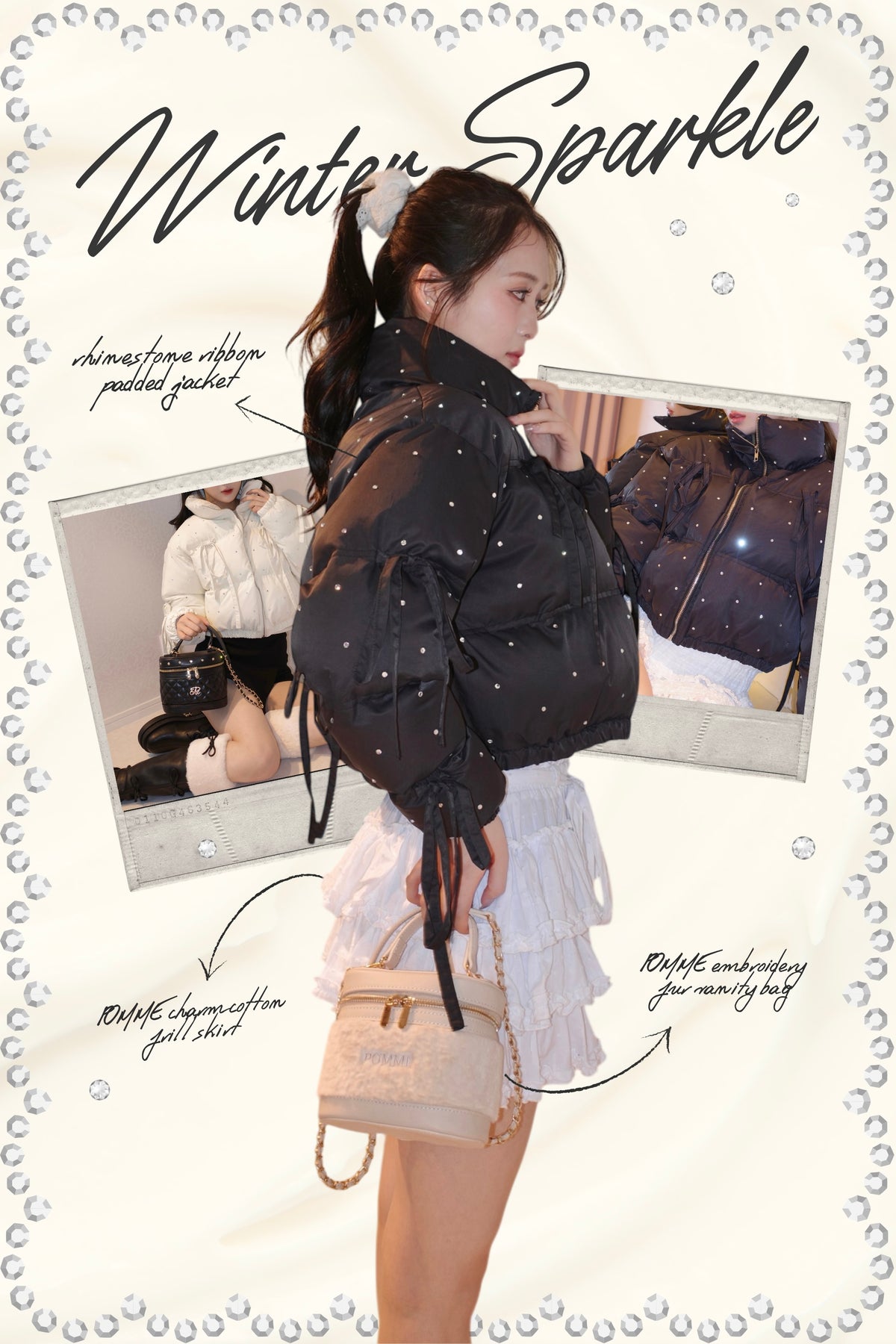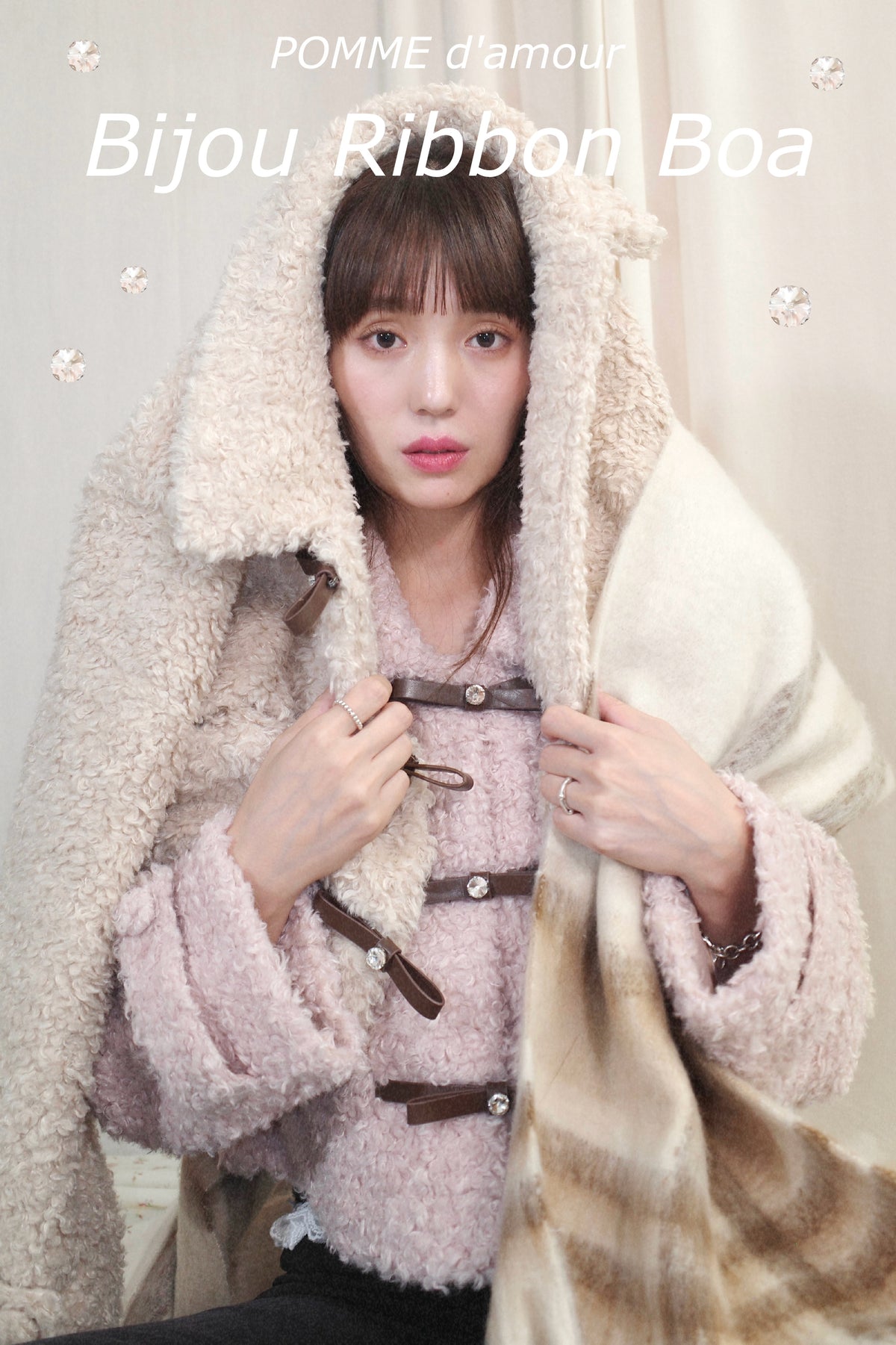 なめらかなボア素材にレザーリボンとビジューを添えた、甘さと上品さを纏う一着⋆˙⟡
