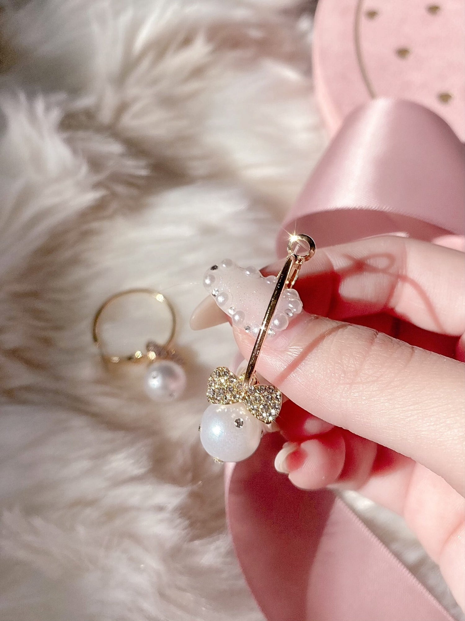 bijou ribbon pearl ring pierce