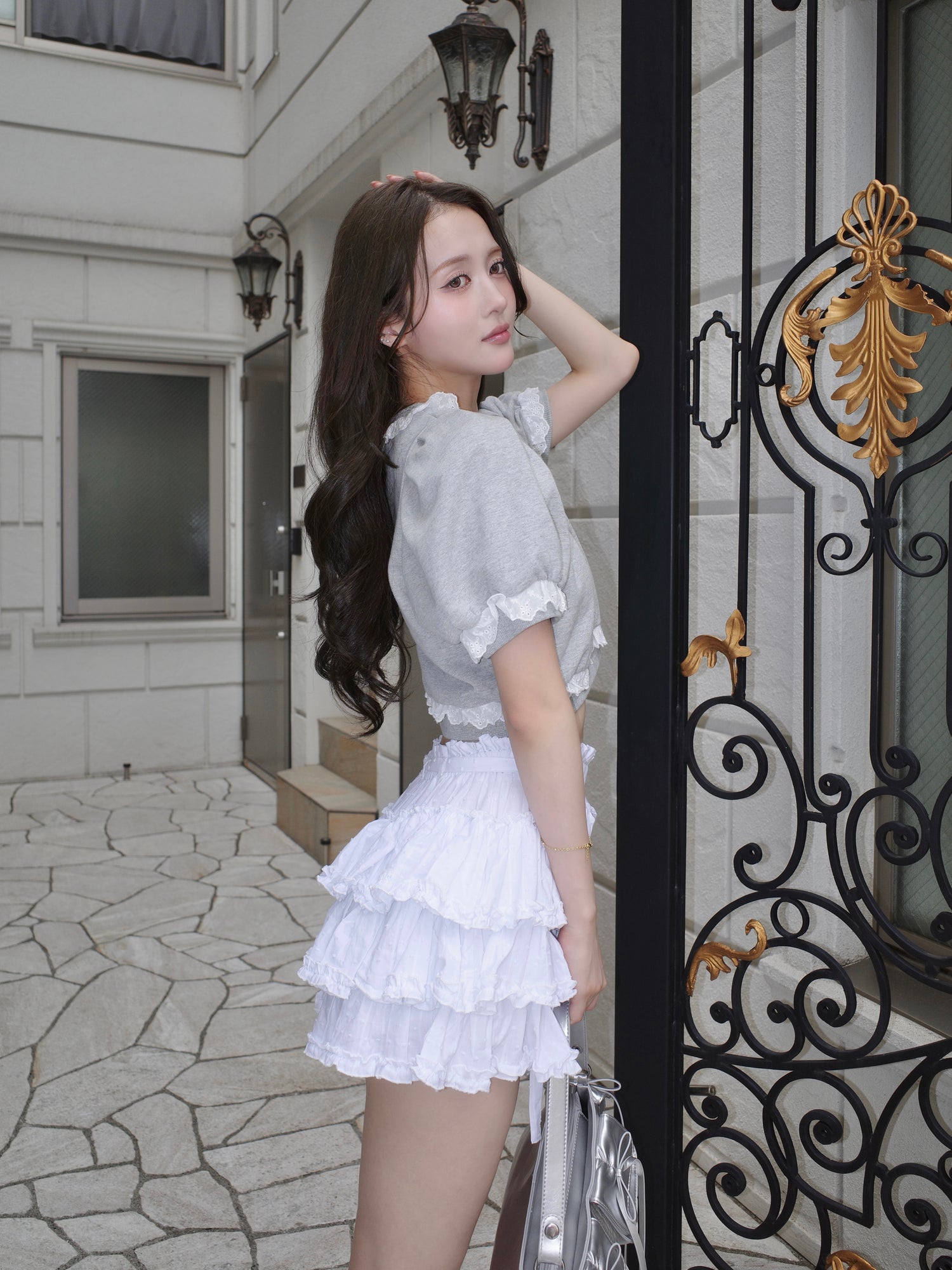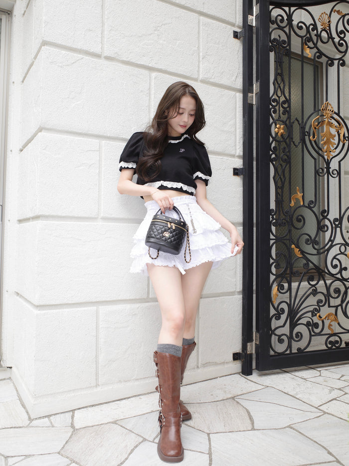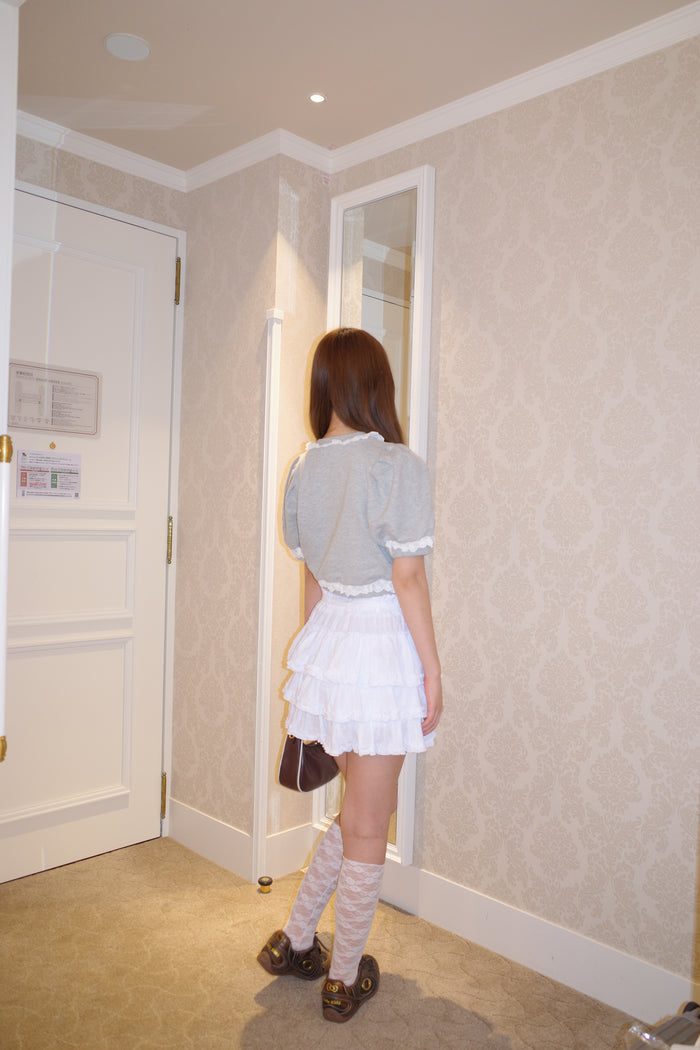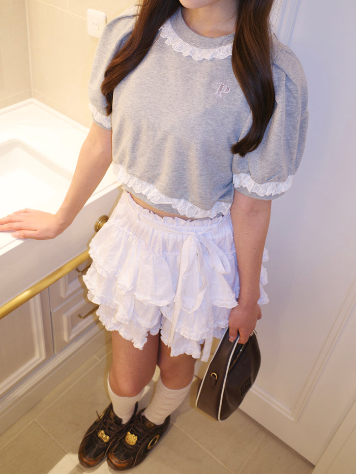 cotton lace puff sleeve sweat