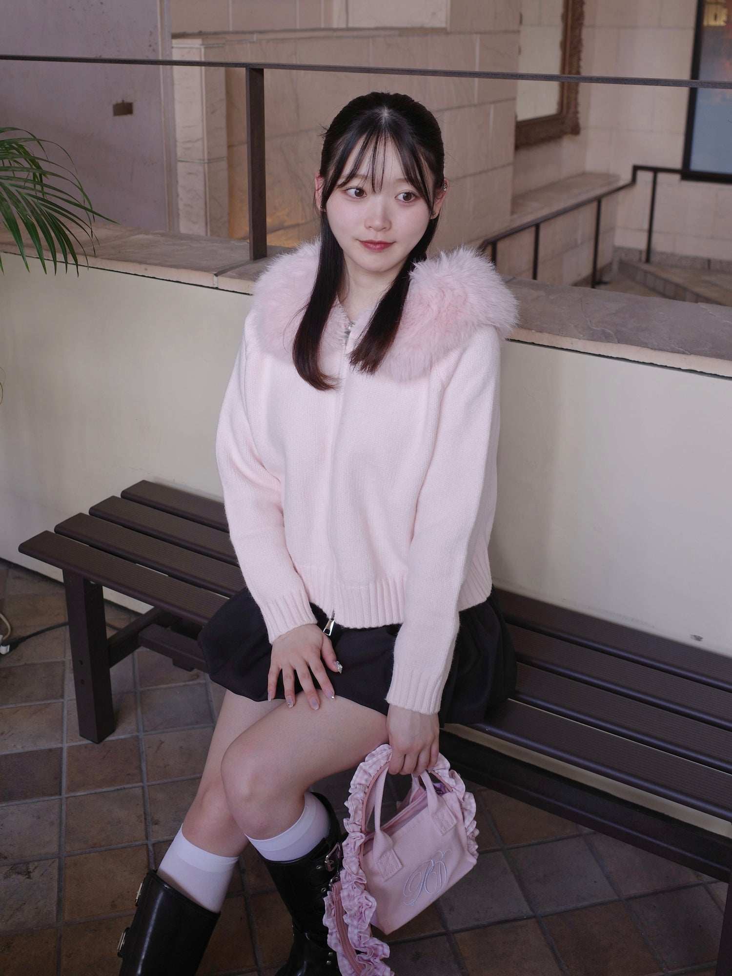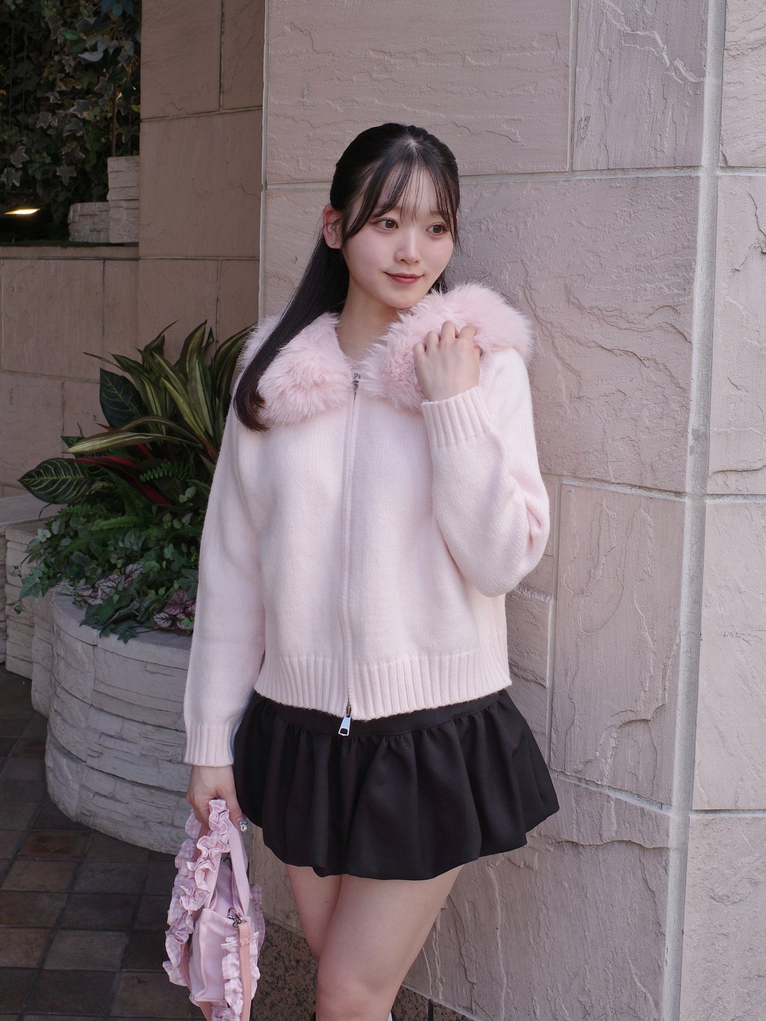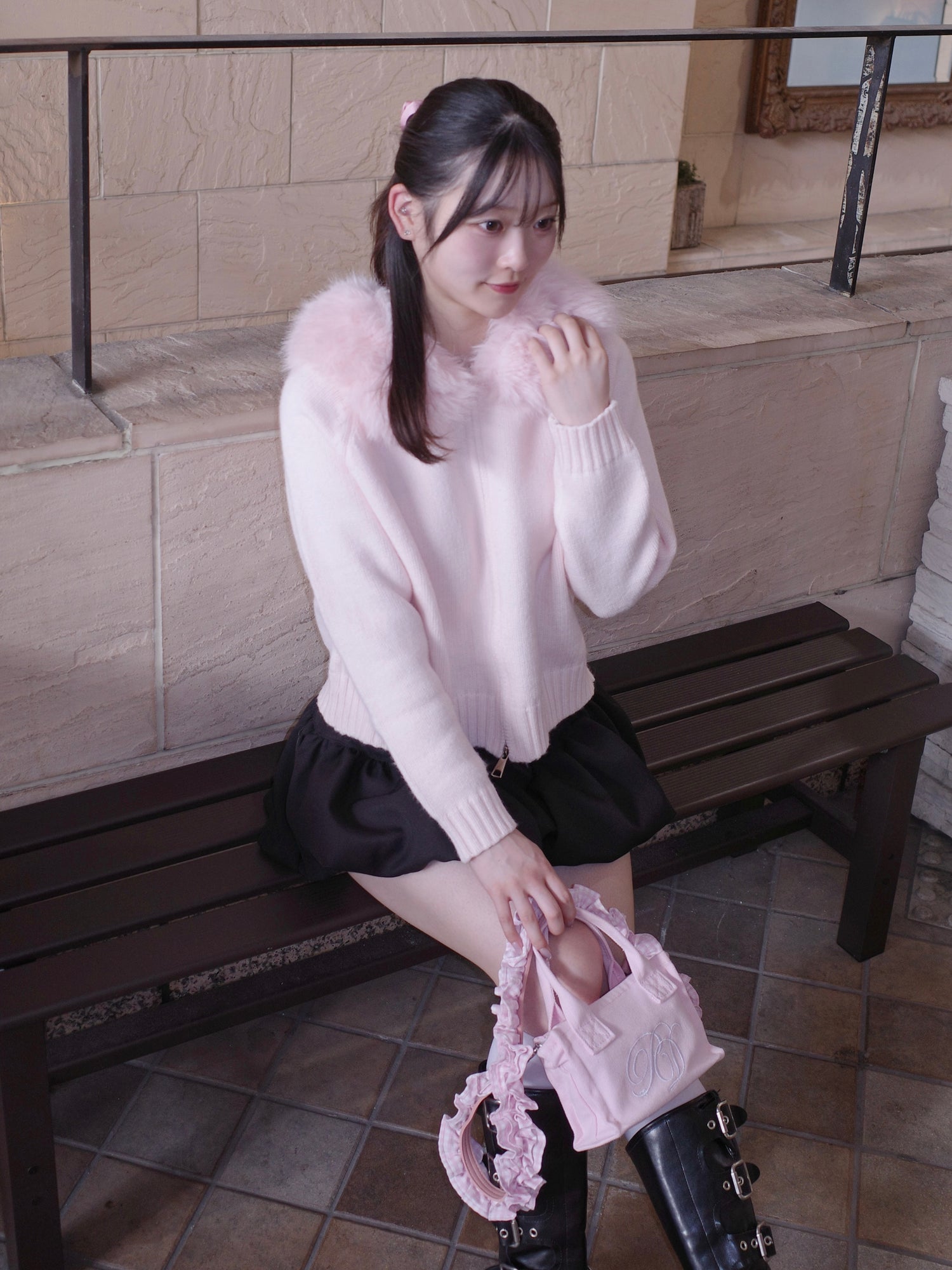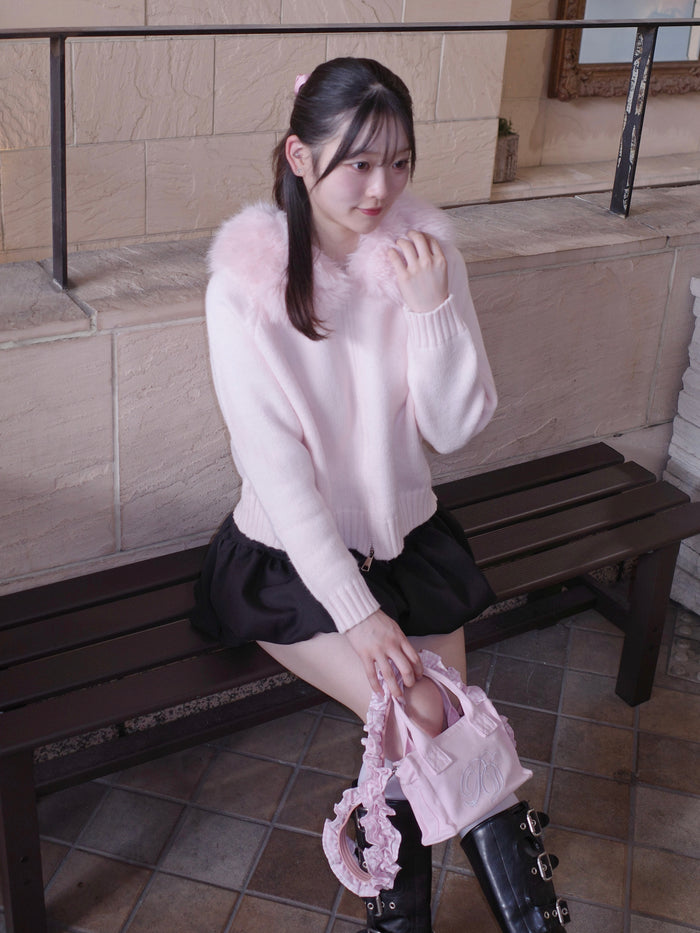 fur knit hoodie